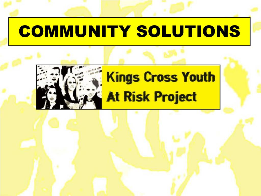 COMMUNITY SOLUTIONS. PROJECT BACKGROUND. 2001 the NSW Government established a new funding program known as the Community Solutions Fund. To assist community development and crime prevention initiatives in high need communities across NSW. Kings Cross being highlighted as one such area.