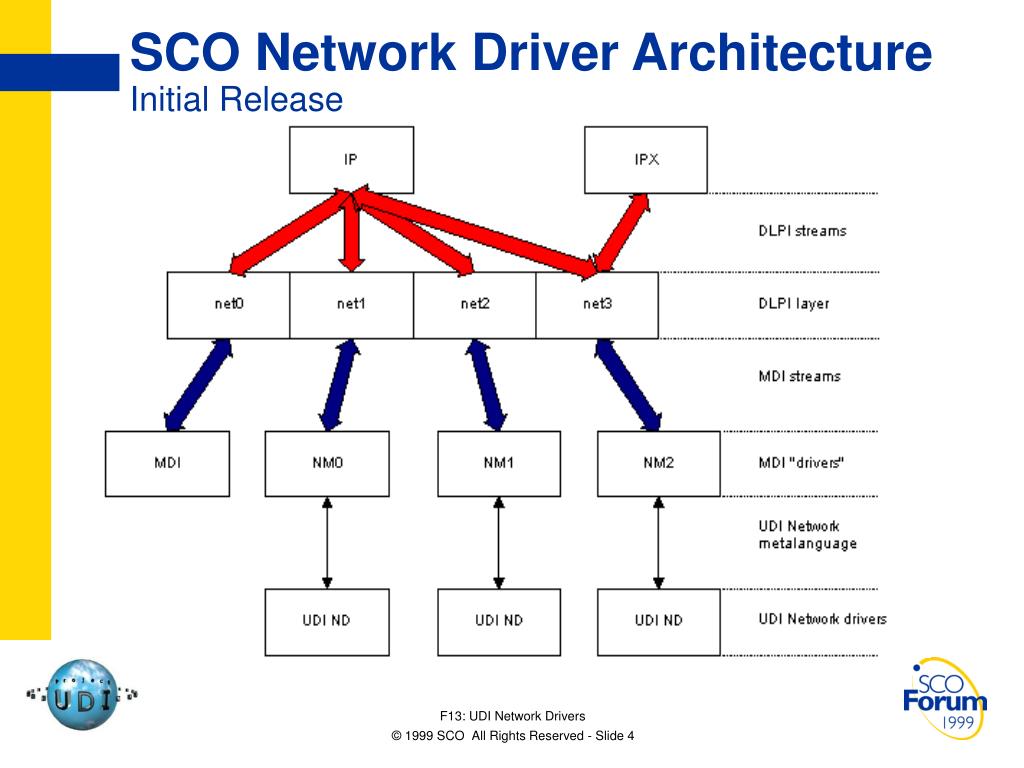 Agenda • SCO UDI Network Driver Architecture • Network Interface Metalanguage Features • Network Driver Initialization • Network Driver Operations • Functional Comparison of MDI and UDI