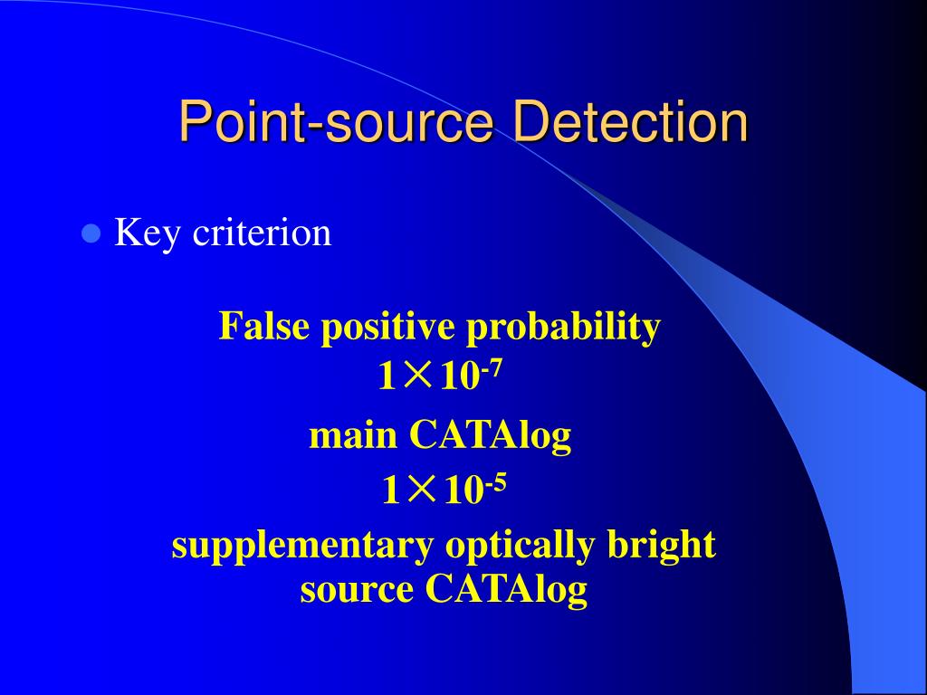 False positive probability 1×10-7 main CATAlog 1×10-5 supplementary optically bright source CATAlog Point-source Detection • Key criterion