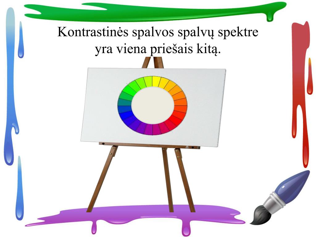 Kontrastinės spalvos spalvų spektre yraviena priešais kitą.