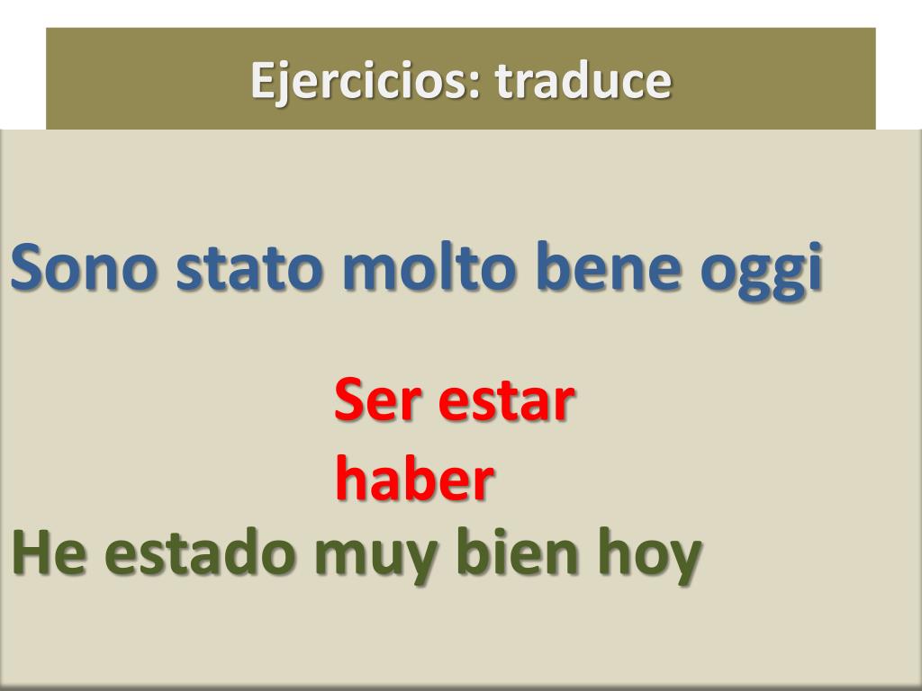 Ejercicios: traduce Sono stato molto bene oggi Heestadomuybienhoy Serestarhaber