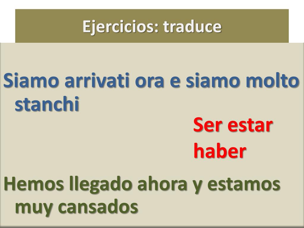 Ejercicios: traduce Siamo arrivati ora e siamo molto stanchi Hemosllegadoahora y estamosmuycansados Serestarhaber
