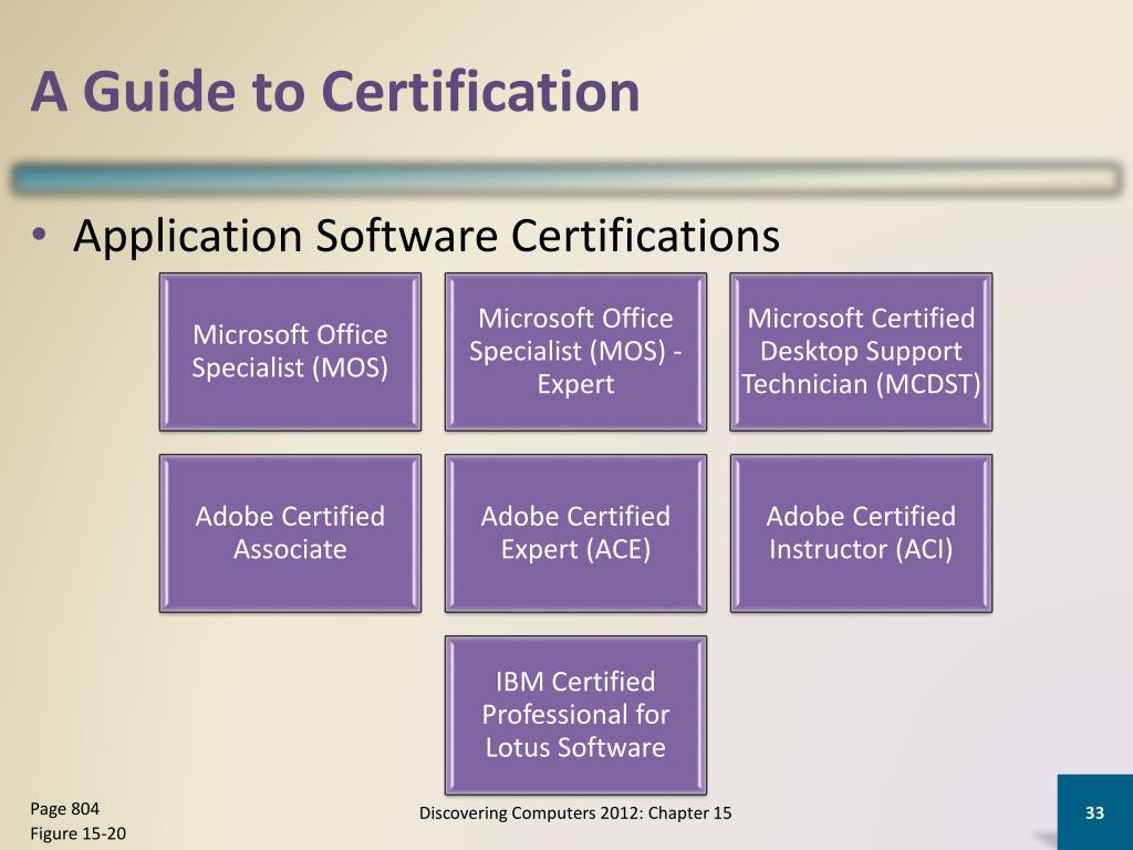 A Guide to Certification • Application Software Certifications Discovering Computers 2012: Chapter 15 Page 804 Figure 15-20