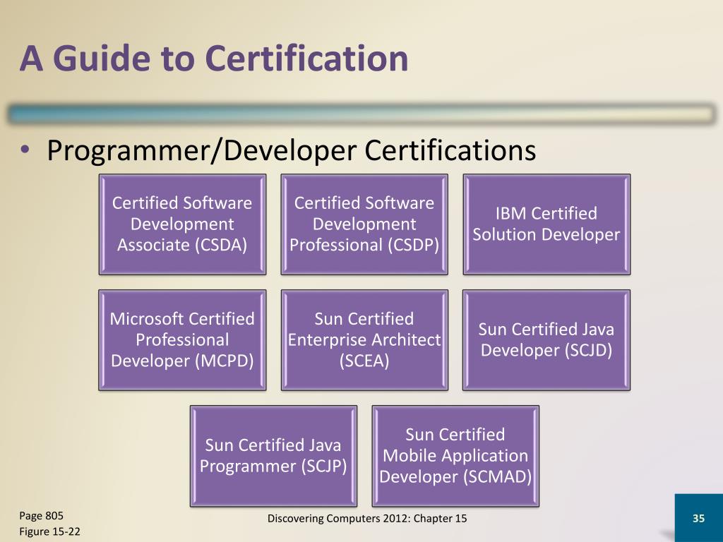 A Guide to Certification • Programmer/Developer Certifications Discovering Computers 2012: Chapter 15 Page 805 Figure 15-22