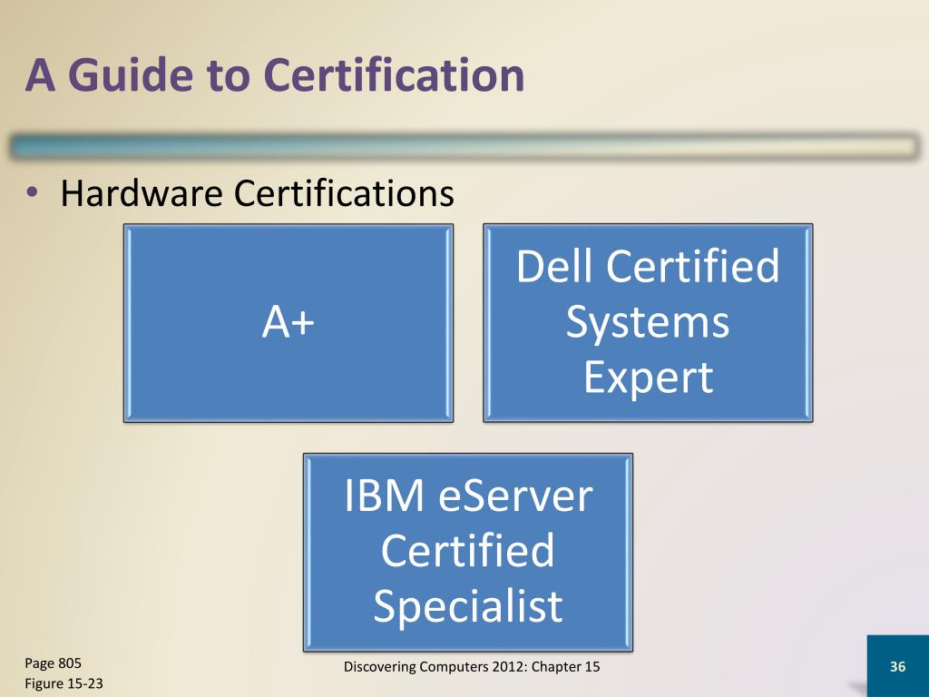 A Guide to Certification • Hardware Certifications Discovering Computers 2012: Chapter 15 Page 805 Figure 15-23