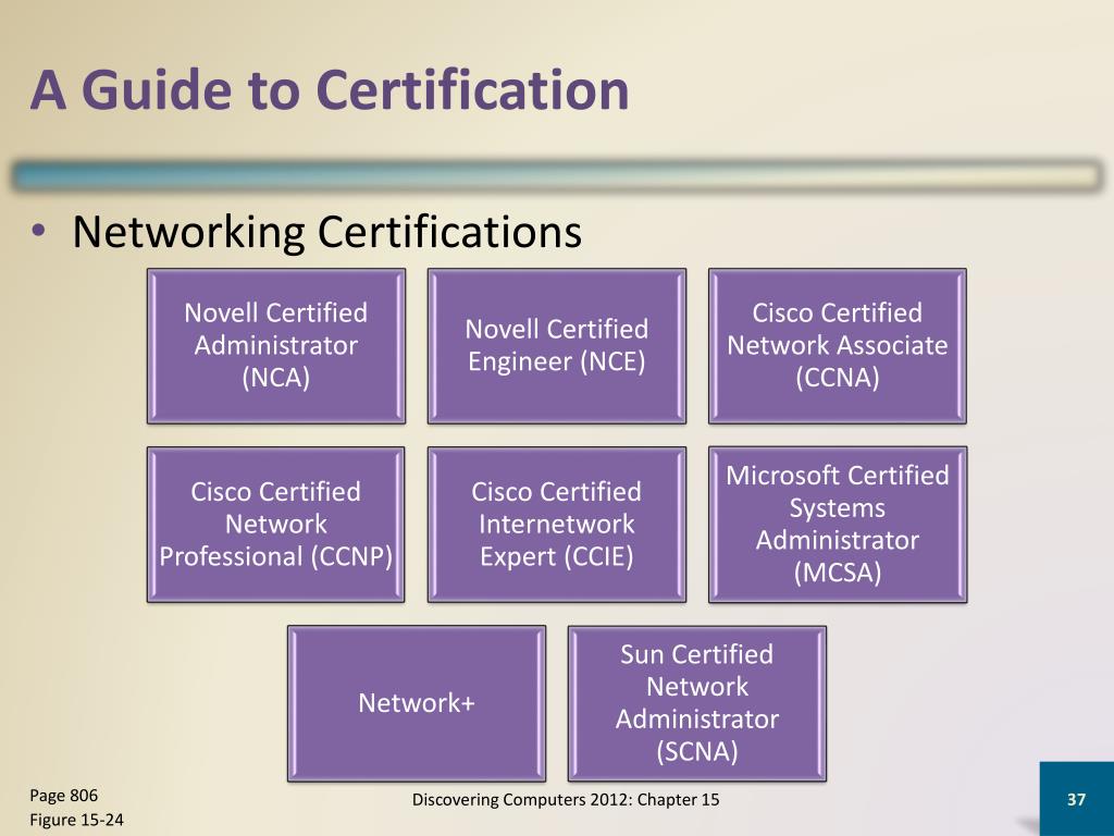 A Guide to Certification • Networking Certifications Discovering Computers 2012: Chapter 15 Page 806 Figure 15-24