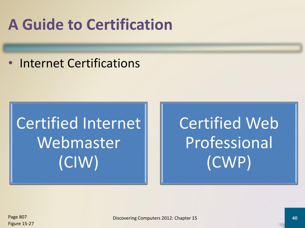A Guide to Certification • Internet Certifications Discovering Computers 2012: Chapter 15 Page 807 Figure 15-27