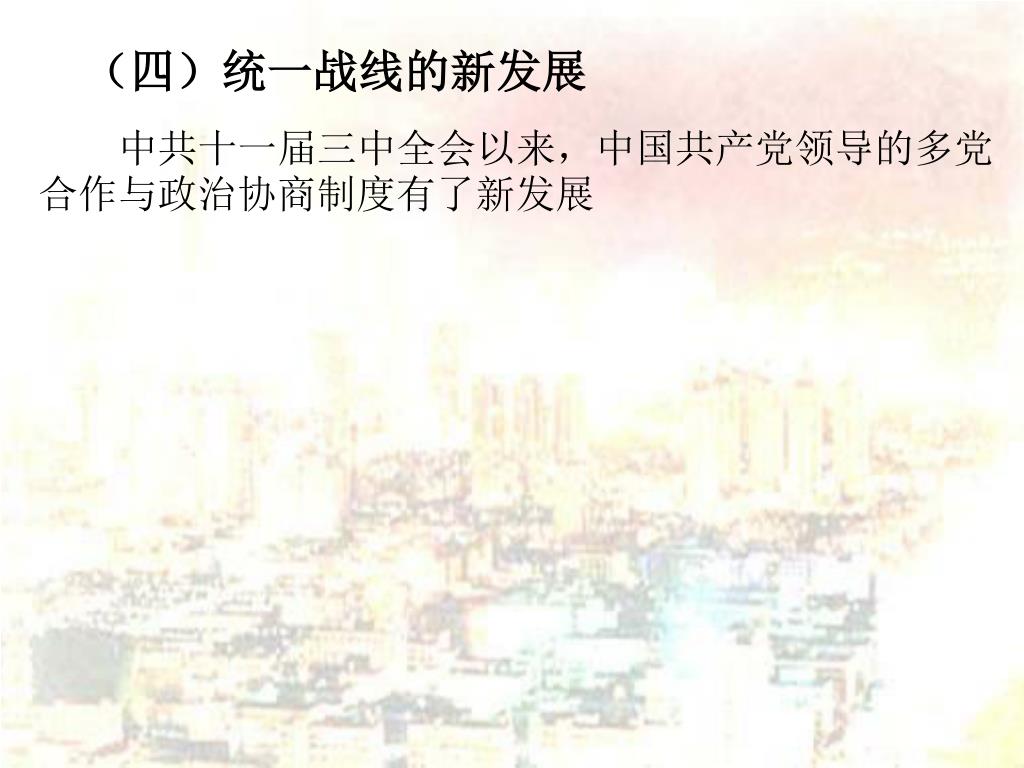 (四)统一战线的新发展 中共十一届三中全会以来,中国共产党领导的多党合作与政治协商制度有了新发展
