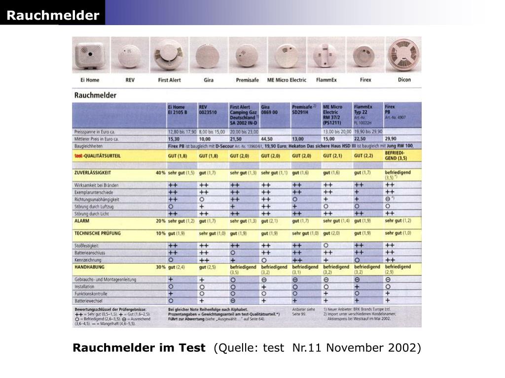 Rauchmelder Rauchmelder im Test (Quelle: test Nr.11 November 2002)