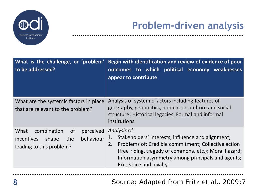 Problem-driven analysis Source: Adapted from Fritz et al., 2009:7