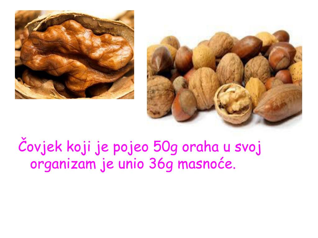 Čovjek koji je pojeo 50g oraha u svoj organizam je unio 36g masnoće.