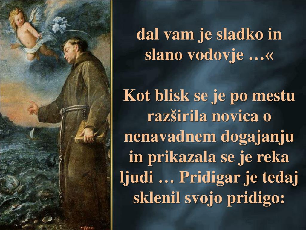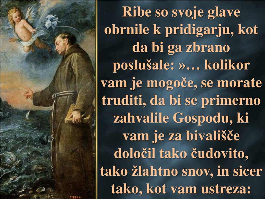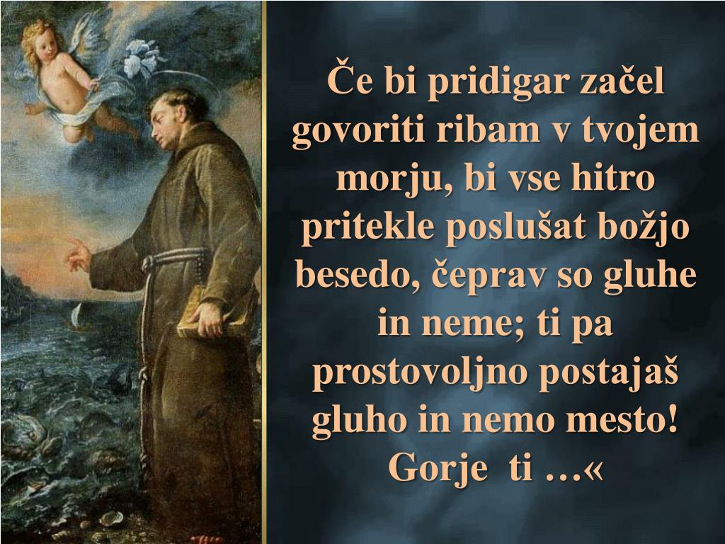 Če bi pridigarzačelgovoritiribam v tvojemmorju, bi vsehitropritekleposlušatbožjobesedo, čeprav so gluhe in neme; ti pa prostovoljnopostajašgluho in nemomesto! Gorjeti …«