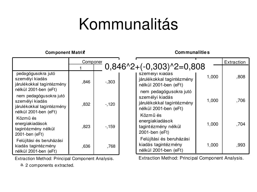 Kommunalitás 0,846^2+(-0,303)^2=0,808