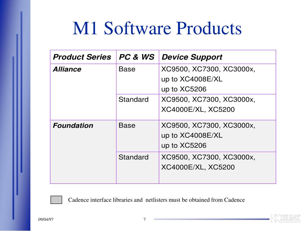 Product Overview • Cadence FPGA Products • XACT (pre-M1) Cadence Interface • Cadence Releases • Xilinx M1.3 Development System • Xilinx Releases