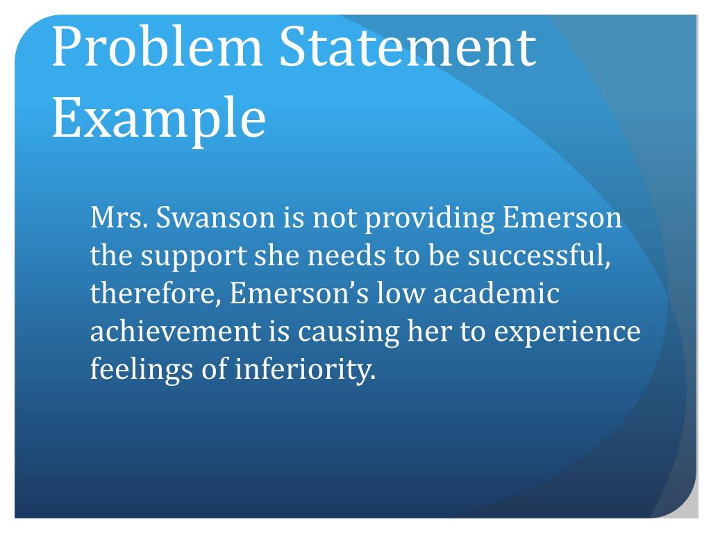 Problem Statement Example Mrs. Swanson is not providing Emerson the support she needs to be successful, therefore, Emerson’s low academic achievement is causing her to experience feelings of inferiority.
