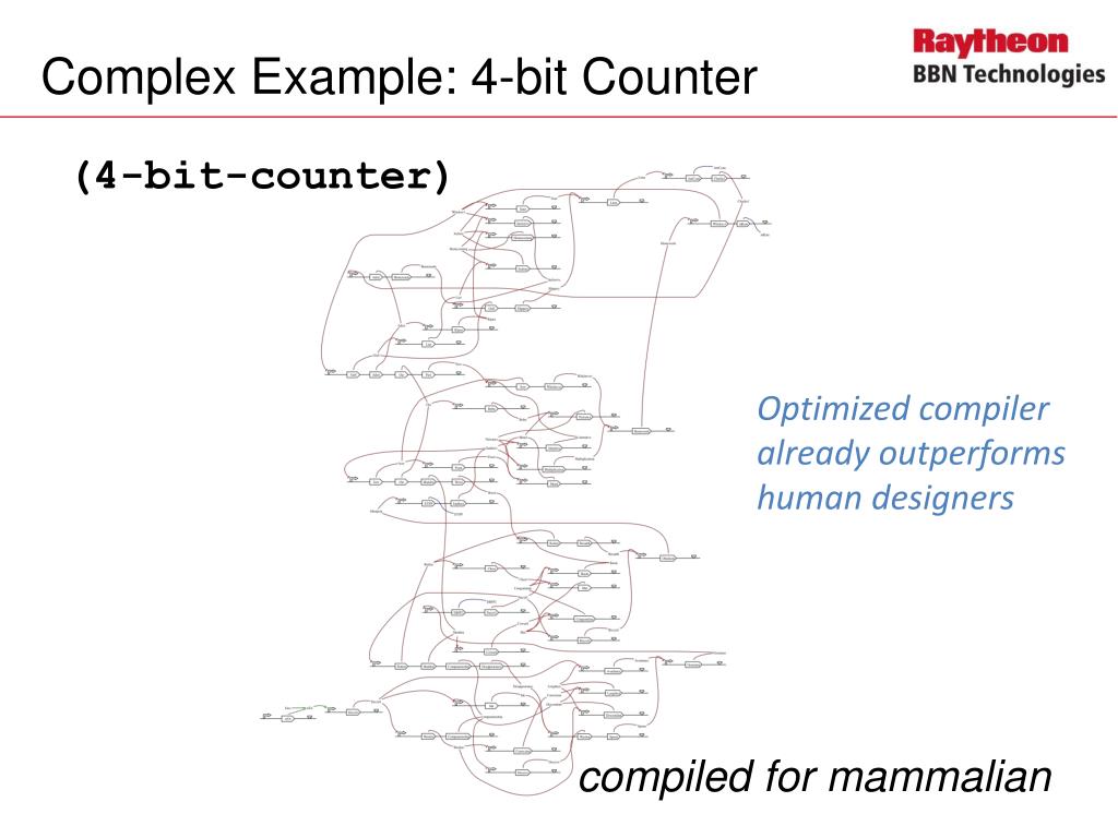 Complex Example: 4-bit Counter (4-bit-counter) compiled for mammalian Optimized compiler already outperforms human designers