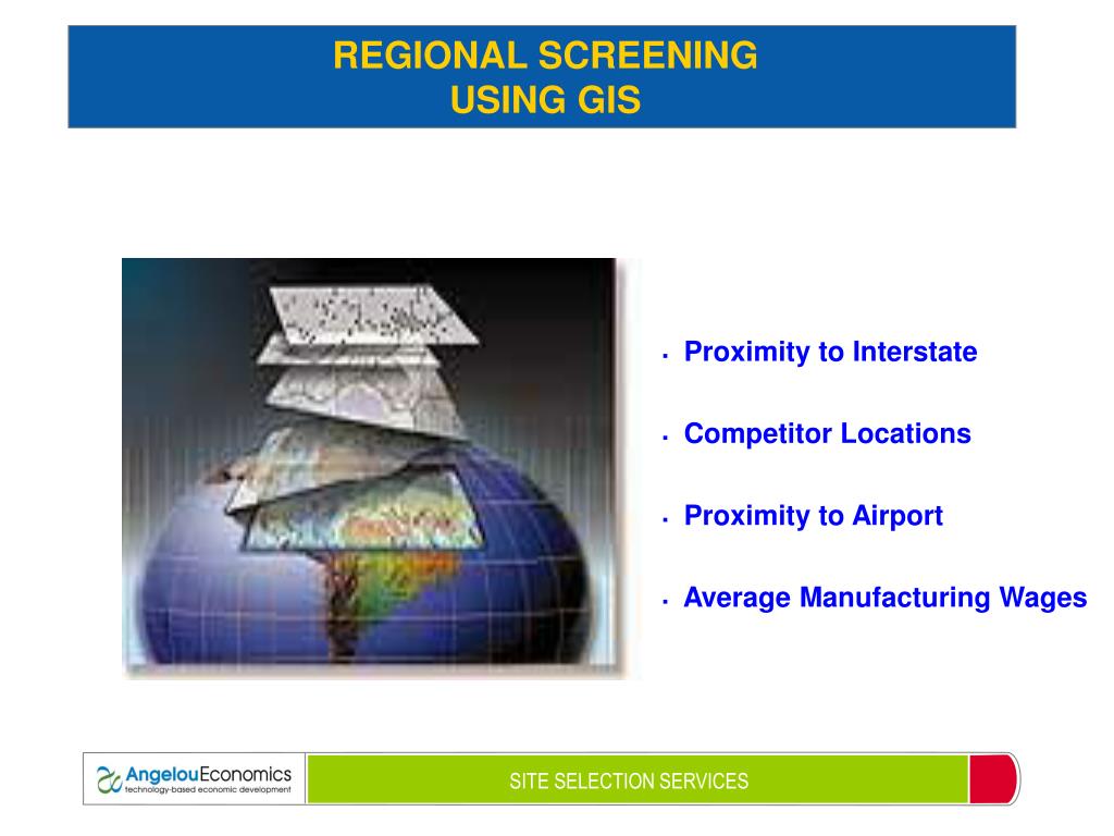 REGIONAL SCREENING USING GIS • Proximity to Interstate • Competitor Locations • Proximity to Airport • Average Manufacturing Wages