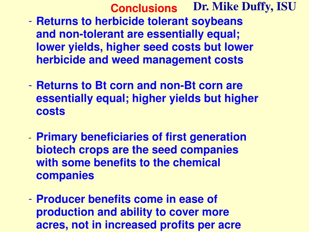 Will other states & countries grow GMO wheat? • Which is greater: Catch-up risk, or risk of consumer rejection & supply system contamination? • Two Iowa State University reports indicate gains from input-trait GMOs are quickly passed on to seed suppliers (Through Tech fees)