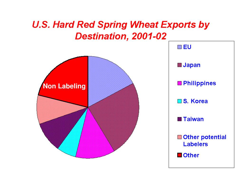 Summary of Risks with GMO Hard Red Spring Wheat • Much uncertainty in foreign mkt. acceptance • Japanese, Korean govt. approval likely • but doesn’t guarantee consumer approval • EU approval doubtful • EU, Far East consumer attitudes not seen quickly changing • Chinese approval w/o labeling unlikely