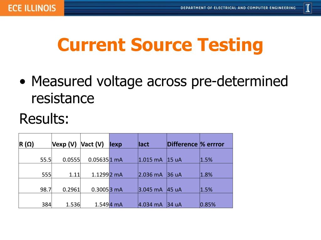 Current Source Testing • Measured voltage across pre-determined resistance Results: