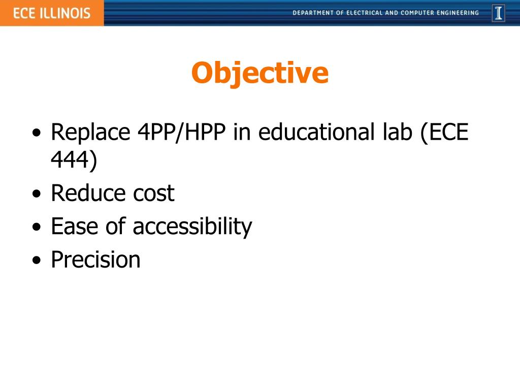 Objective • Replace 4PP/HPP in educational lab (ECE 444) • Reduce cost • Ease of accessibility • Precision