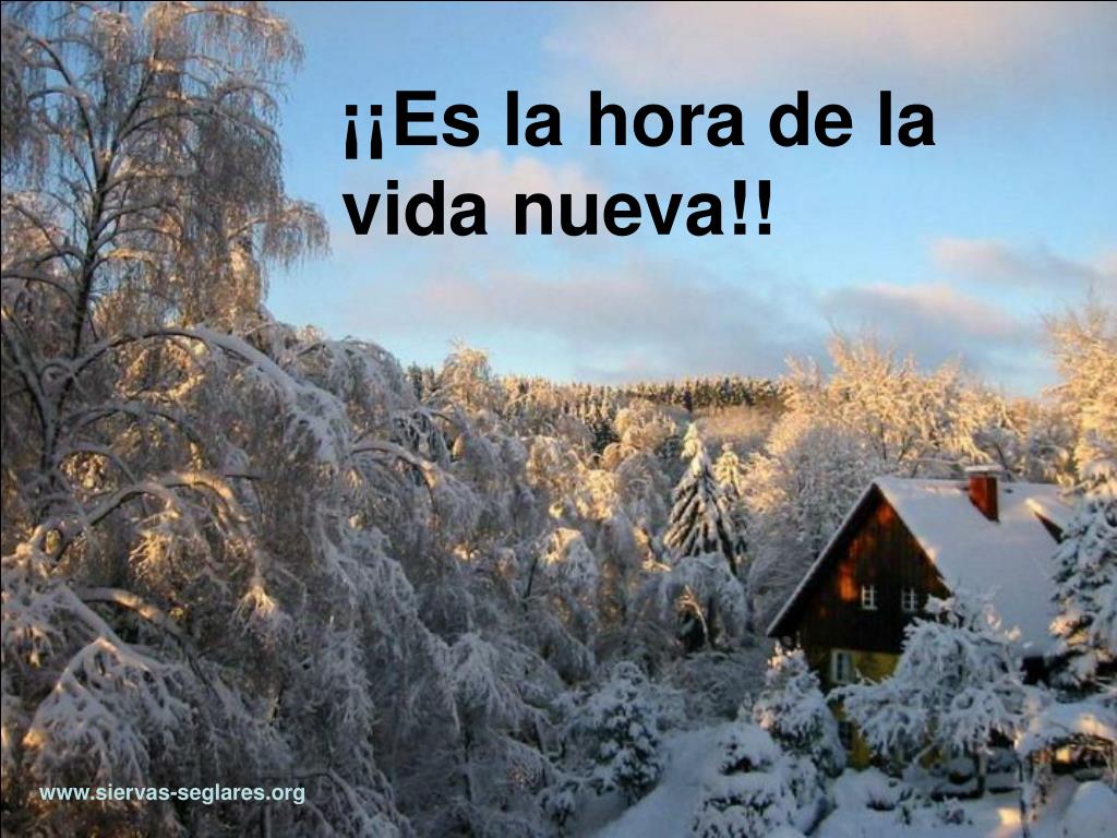 ¡¡Es la hora de la vida nueva!!. www.siervas-seglares.org. Es la hora de entrar en la noche sin miedo, de atravesar ciudades y pueblos,. Es la hora de quemar lo viejo. ...y de comprar vino nuevo,. ...hora de quedarse en el corazón del mundo,.