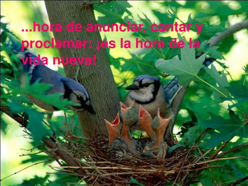 ...hora de anunciar, cantar y proclamar: ¡es la hora de la vida nueva!