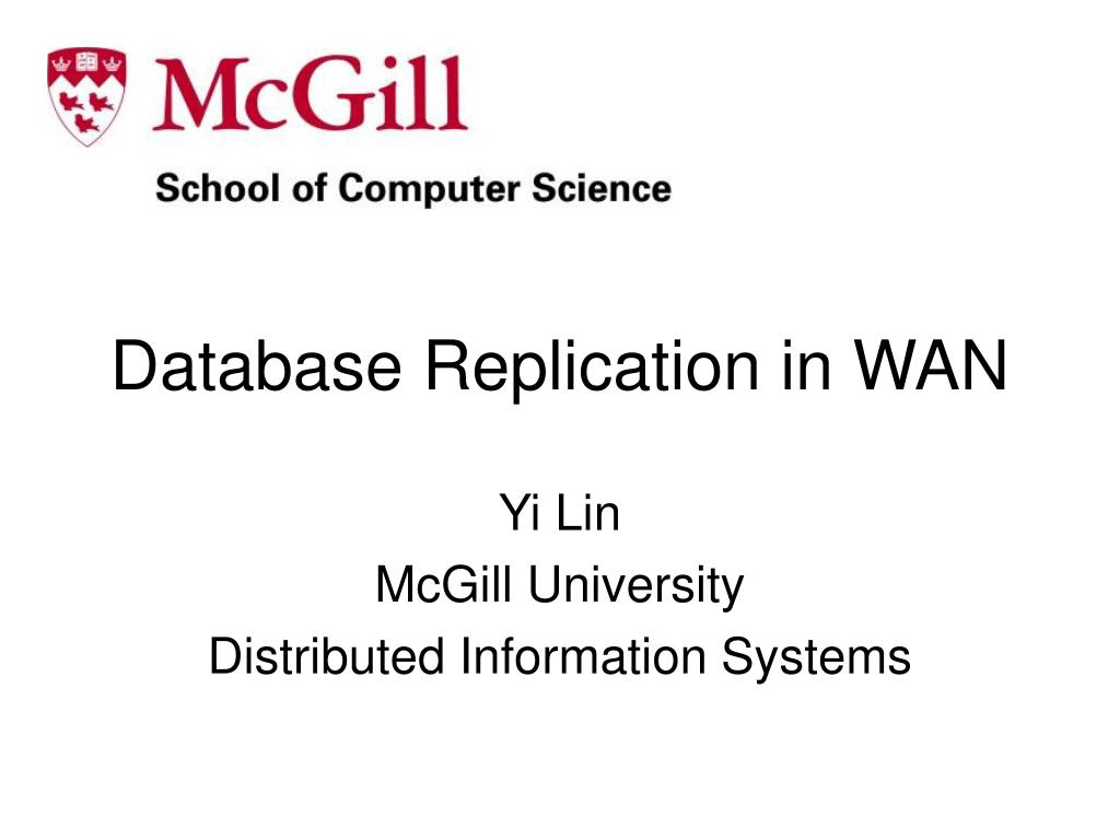 Database Replication in WAN Yi Lin McGill University Distributed Information Systems