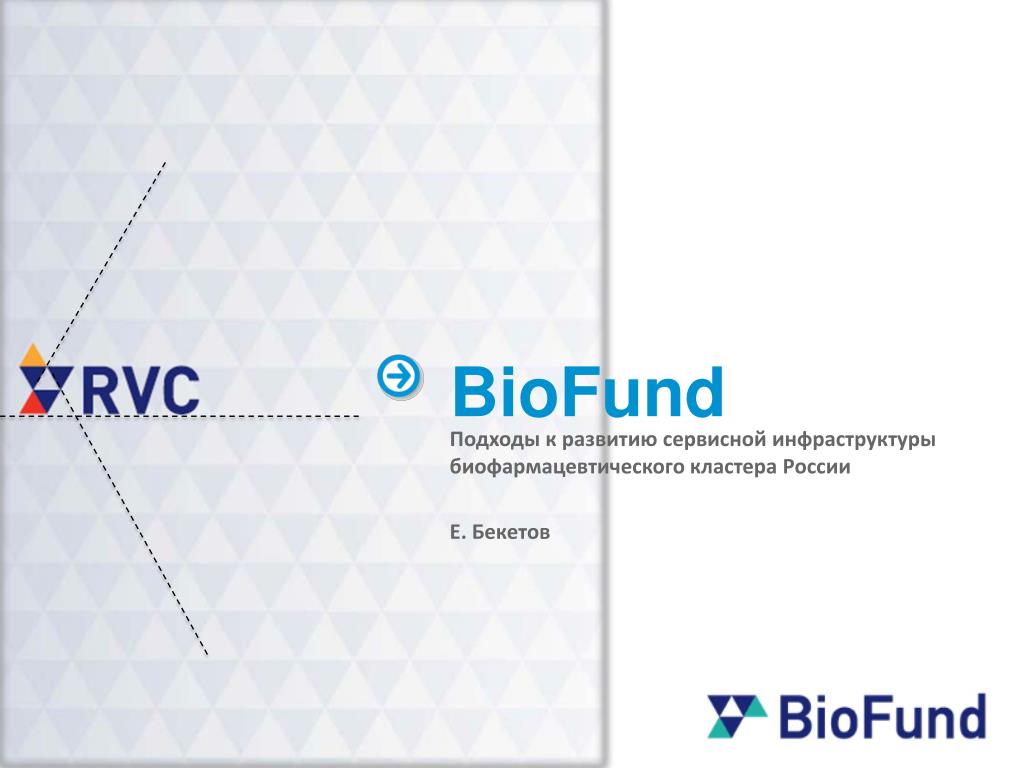BioFund Подходы к развитию сервисной инфраструктуры биофармацевтического кластера России Е. Бекетов