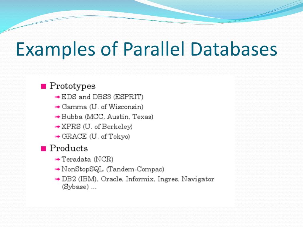 DBMS: The || Success Story • DBMSs are the most (only?) successful application of parallelism. • Teradata, Tandem, Thinking Machines • Every major DBMS vendor has some || server • Workstation manufacturers now depend on || DB server sales. • Reasons for success: • Bulk-processing (= partition ||-ism). • Natural pipelining. • Inexpensive hardware can do the trick • Users/app-programmers don’t need to think in ||
