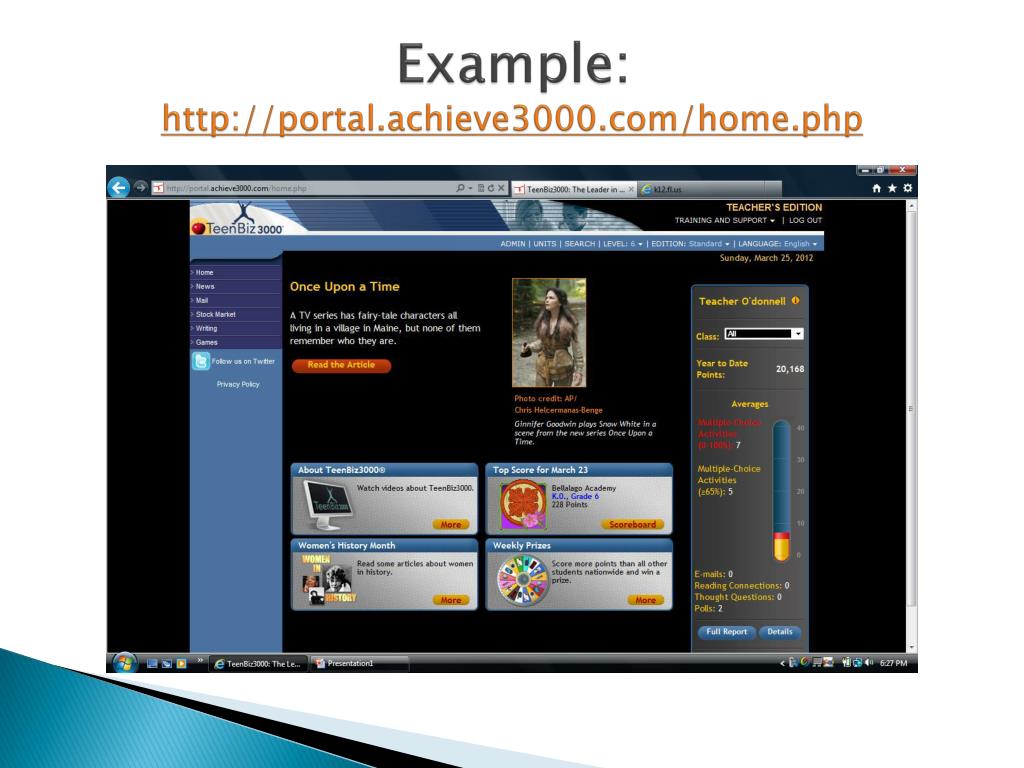 Achieve3000 • The Achieve3000 program is a “web-based differentiated K-12 reading program that uses email, technology, and current events to strengthen student’s literacy skills” (Achieve3000, 2010).
