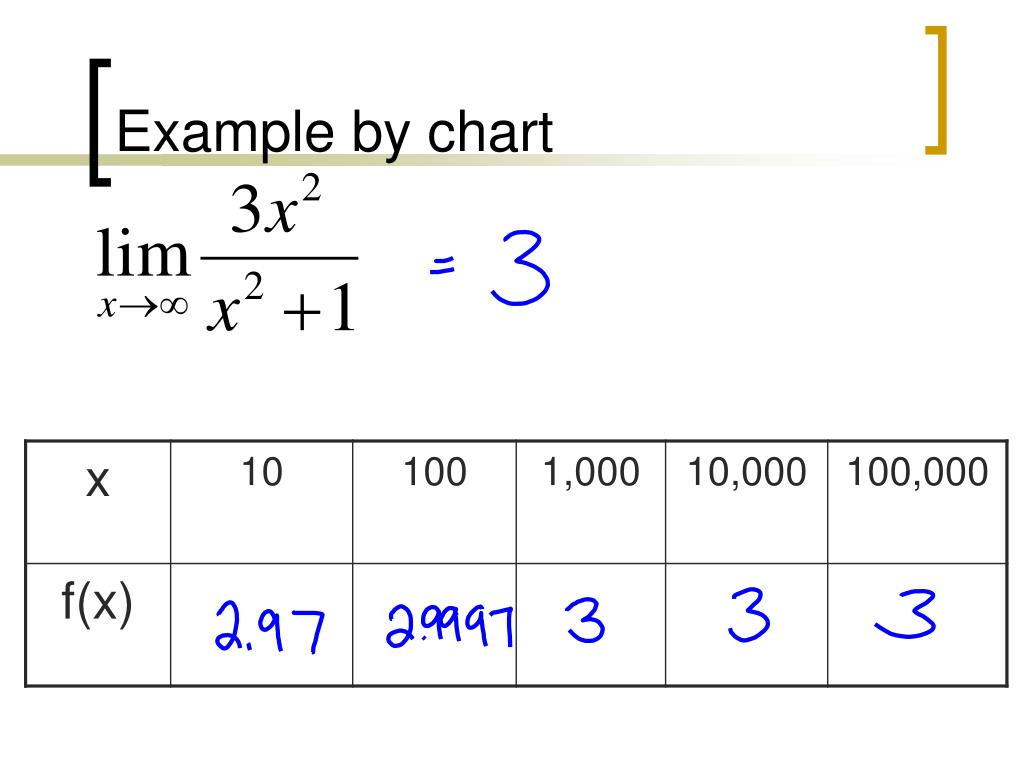 A change in approach • We’ve been looking at limits as they appraoch a certain value • x 7, x -3, x 2,135 • We can also look as x approaches infinity or negative infinity