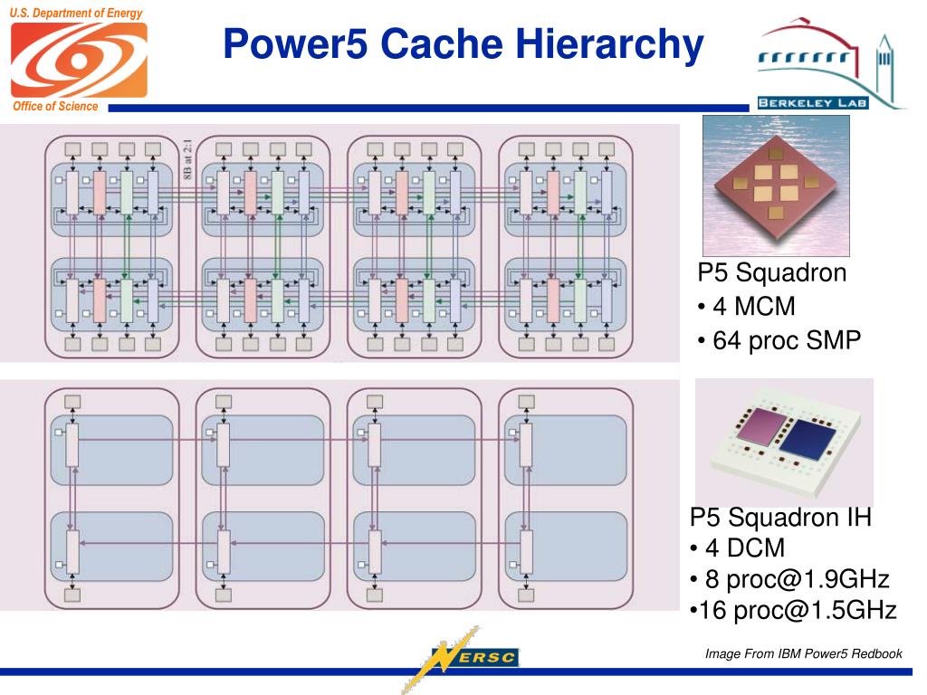 Power5 Cache Hierarchy • P5 Squadron • 4 MCM • 64 proc SMP • P5 Squadron IH • 4 DCM • 8 proc@1.9GHz • 16 proc@1.5GHz Image From IBM Power5 Redbook