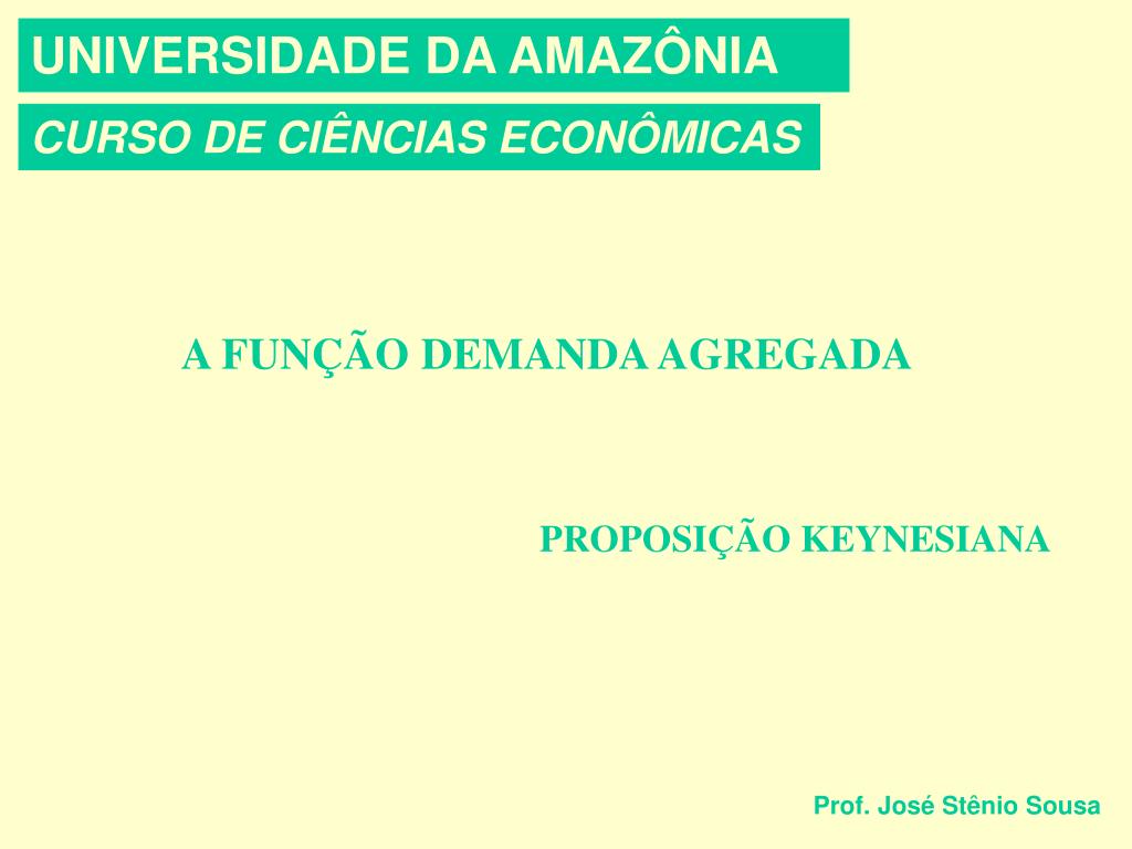 UNIVERSIDADE DA AMAZÔNIA CURSO DE CIÊNCIAS ECONÔMICAS A FUNÇÃO DEMANDA AGREGADA PROPOSIÇÃO KEYNESIANA Prof. José Stênio Sousa