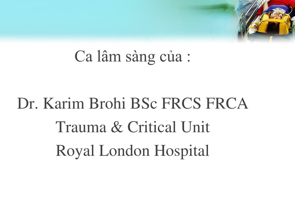 Ca lâm sàng của : Dr. Karim Brohi BSc FRCS FRCA Trauma & Critical Unit Royal London Hospital