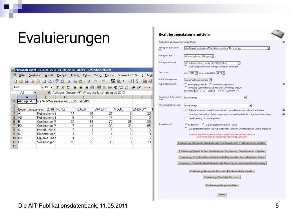 Die Publikations-datenbank des AIT. Karl Riedling. Die AIT-Publikationsdatenbank. Anwendungsbereiche der Publikationsdatenbank. Evaluierungen: Ermittlung der Anzahl von Publikationen in beliebig definierbaren Kategorien