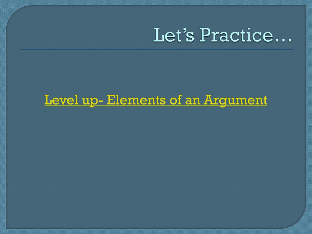 Let’s Practice… Level up- Elements of an Argument