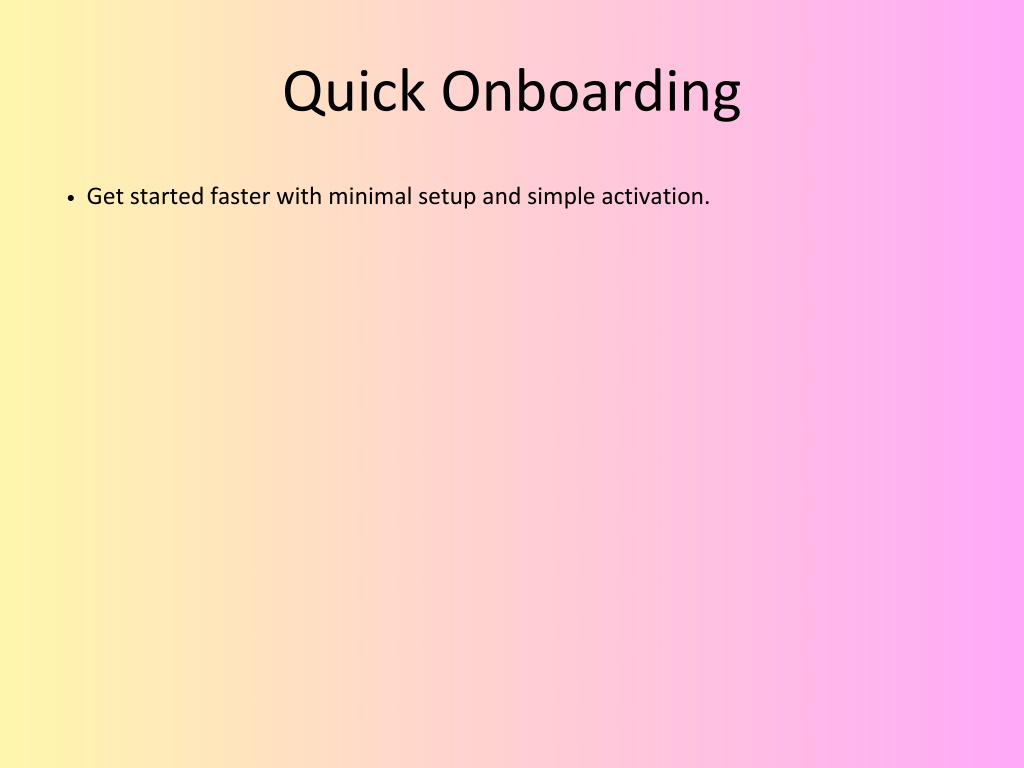 Quick Onboarding Get started faster with minimal setup and simple activation.