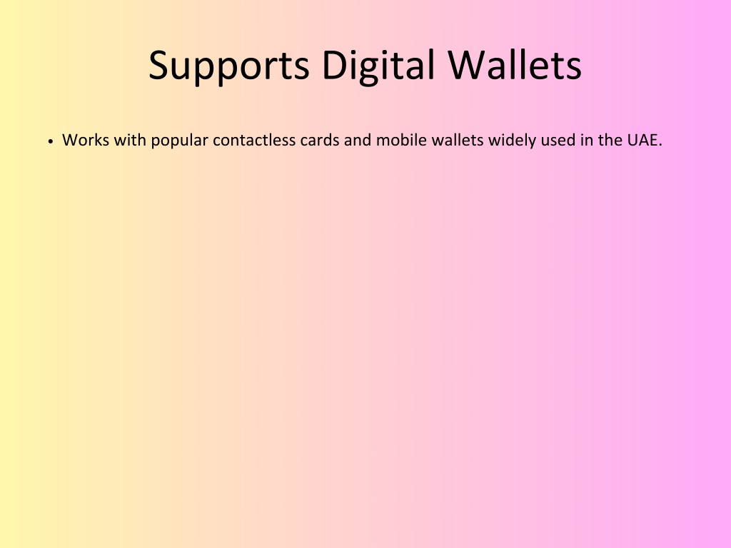 Supports Digital Wallets Works with popular contactless cards and mobile wallets widely used in the UAE.
