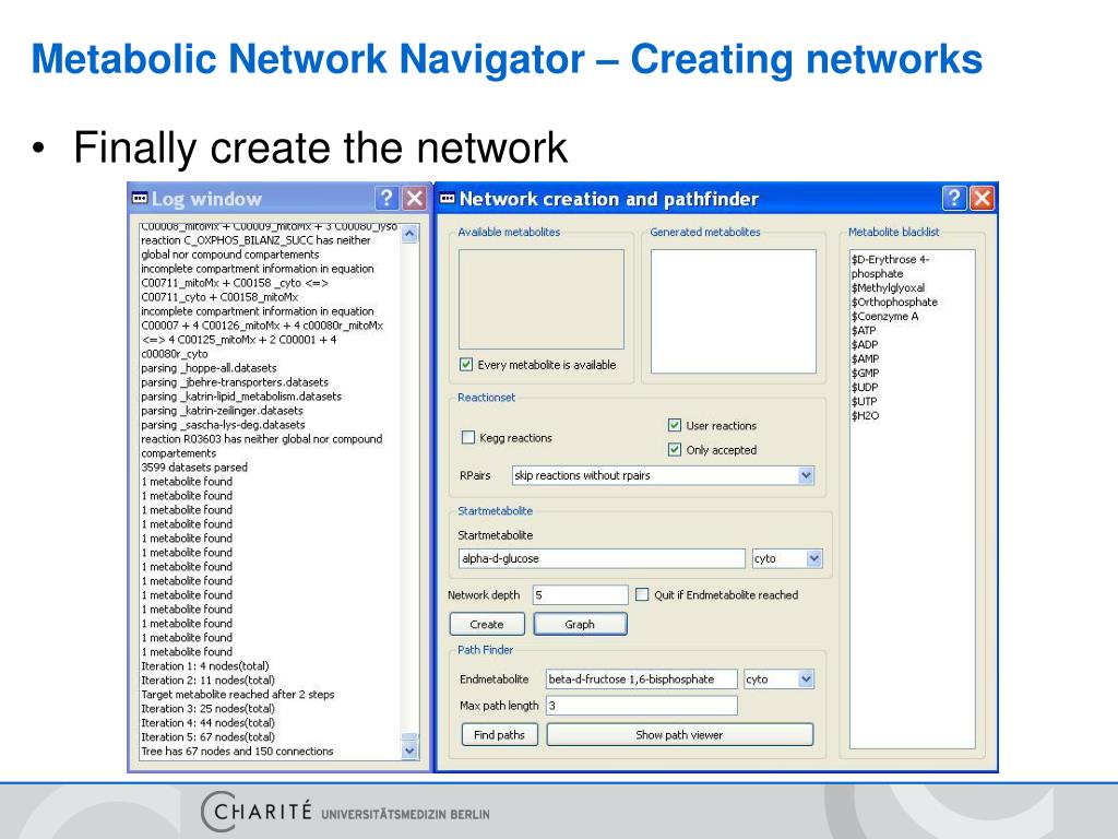 Metabolic Network Navigator – Creating networks • Finally create the network