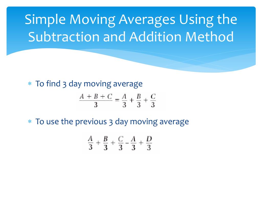 Simple Moving Averages Using the Subtraction and Addition Method To find 3 day moving average To use the previous 3 day moving average