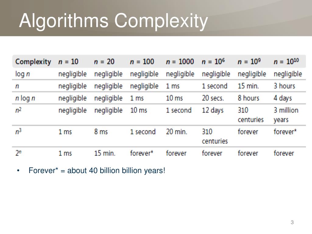 Algorithms Complexity Forever* = about 40 billion billionyears!
