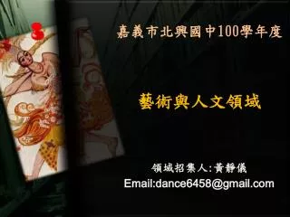 嘉義市北興國中100學年度 藝術與人文領域 領域招集人:黃靜儀 Email:dance6458@gmail.com