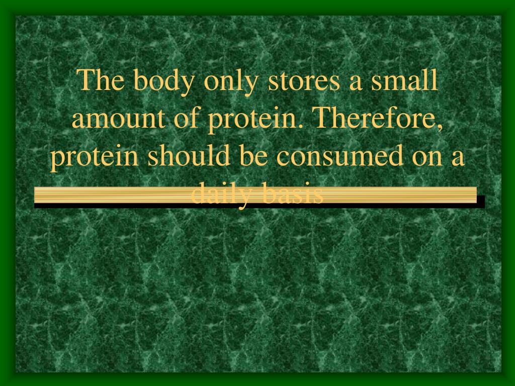 The body only stores a small amount of protein. Therefore, protein should be consumed on a daily basis