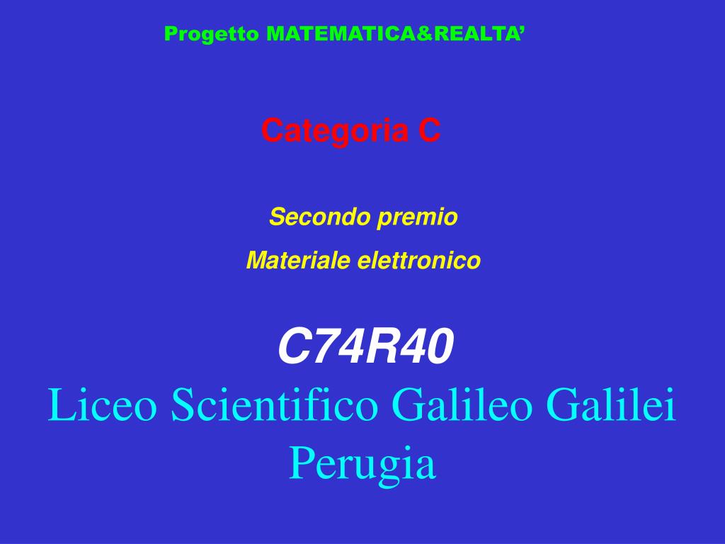 Progetto MATEMATICA&REALTA’ Categoria C Secondo premio Materiale elettronico C74R40 Liceo Scientifico Galileo Galilei Perugia
