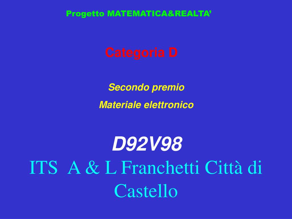 Progetto MATEMATICA&REALTA’ Categoria D Secondo premio Materiale elettronico D92V98 ITS A & L Franchetti Città di Castello