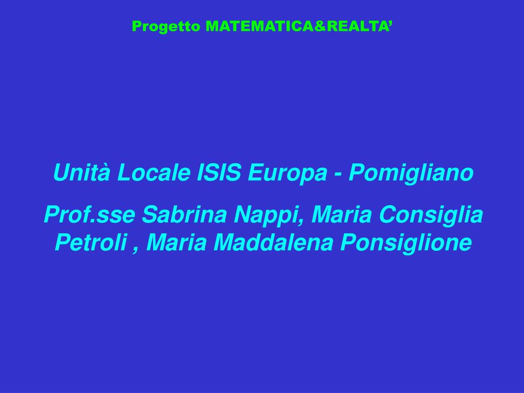 Progetto MATEMATICA&REALTA’ Unità Locale ISIS Europa - Pomigliano Prof.sse Sabrina Nappi, Maria Consiglia Petroli , Maria Maddalena Ponsiglione