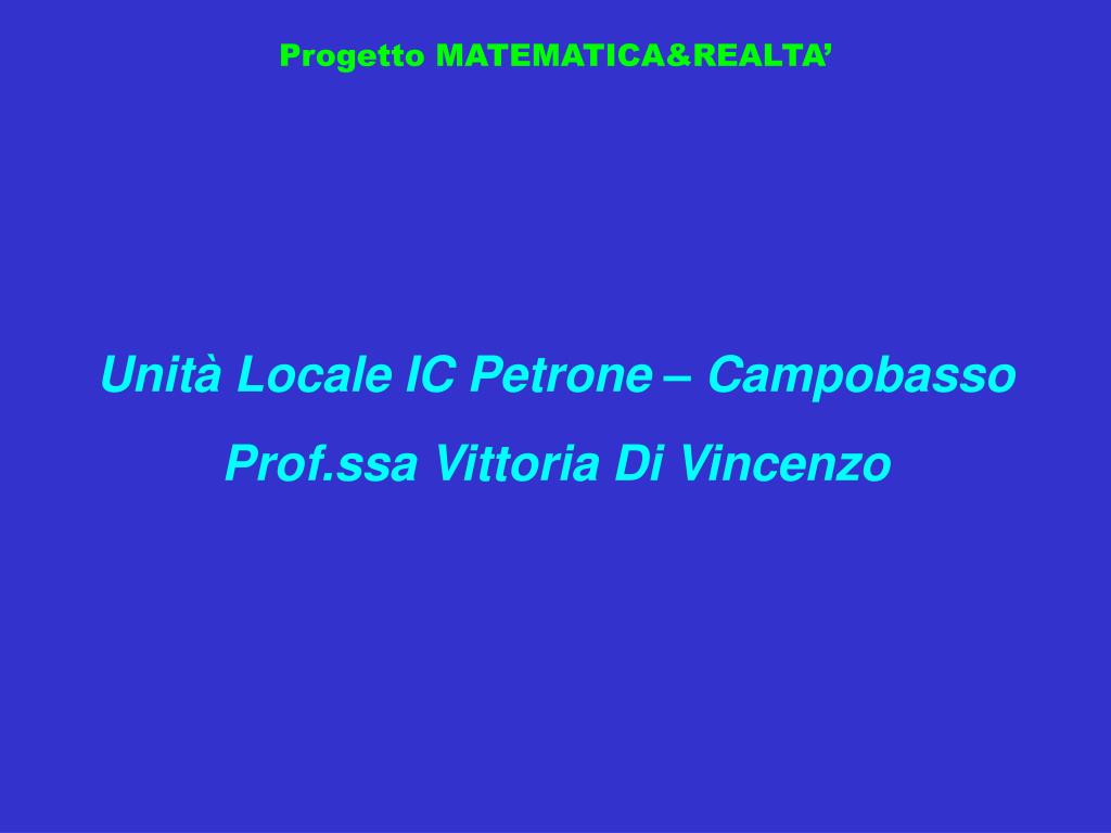 Progetto MATEMATICA&REALTA’ Unità Locale IC Petrone – Campobasso Prof.ssa Vittoria Di Vincenzo
