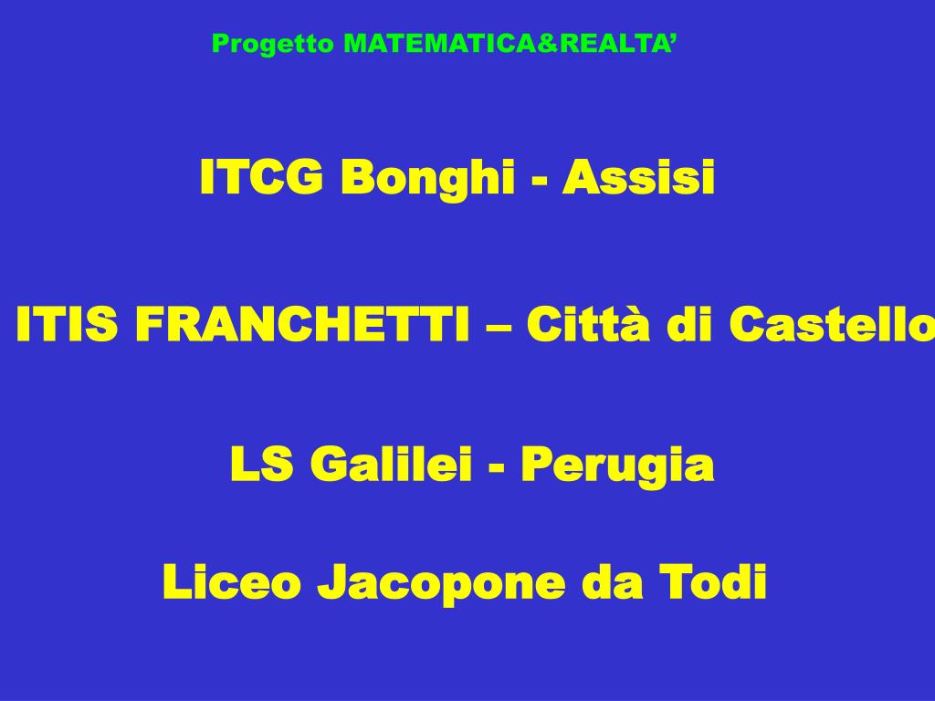 Progetto MATEMATICA&REALTA’ ITCG Bonghi - Assisi ITIS FRANCHETTI – Città di Castello LS Galilei - Perugia Liceo Jacopone da Todi
