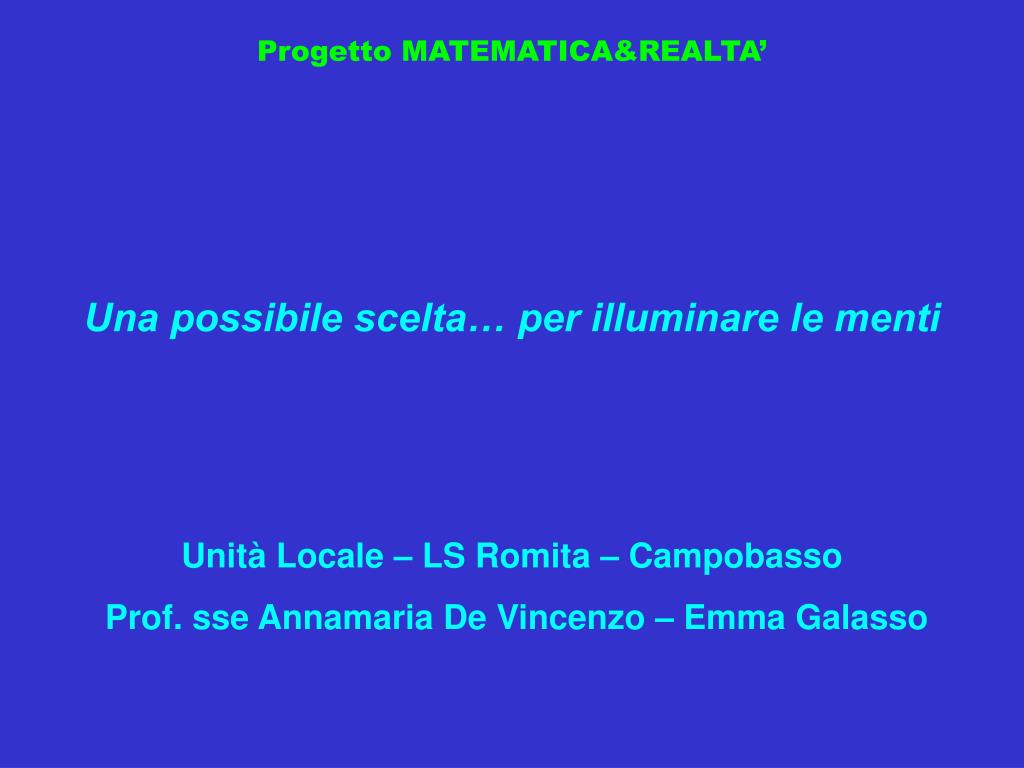 Progetto MATEMATICA&REALTA’ Una possibile scelta… per illuminare le menti Unità Locale – LS Romita – Campobasso Prof. sse Annamaria De Vincenzo – Emma Galasso
